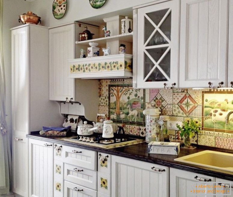 Живе цвијеће и суво цвијеће у великим стакленим вазама могу се ставити на полицу или у близини, наизменично са корпама или украсним јелима. Огледало изнад мачевара ће визуелно повећати простор собе. Захваљујући симулацији камина, соба изгледа много лакша и пространија. Камин у стану ствара атмосферу удобности и спокојства што је профитабилно решење у унутрашњој декорацији стана.