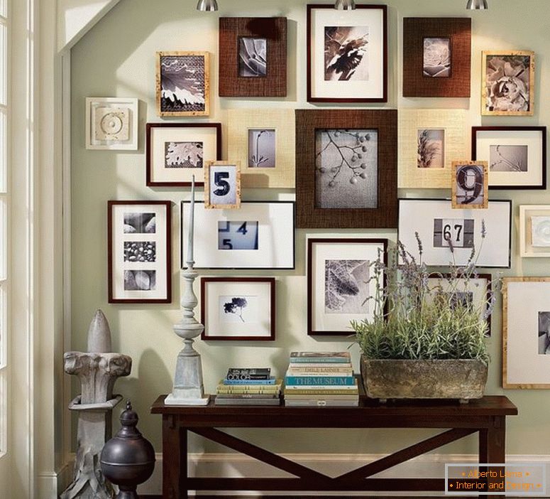 Фото позадине са овим бојама могу постати прави украс ходника средње величине. Сушени цвијет љубичасте боје на столу за новине донијеће ходник до стила Провенце. А вештачка светлост на зидовима ће помоћи визуелном ширењу простора.