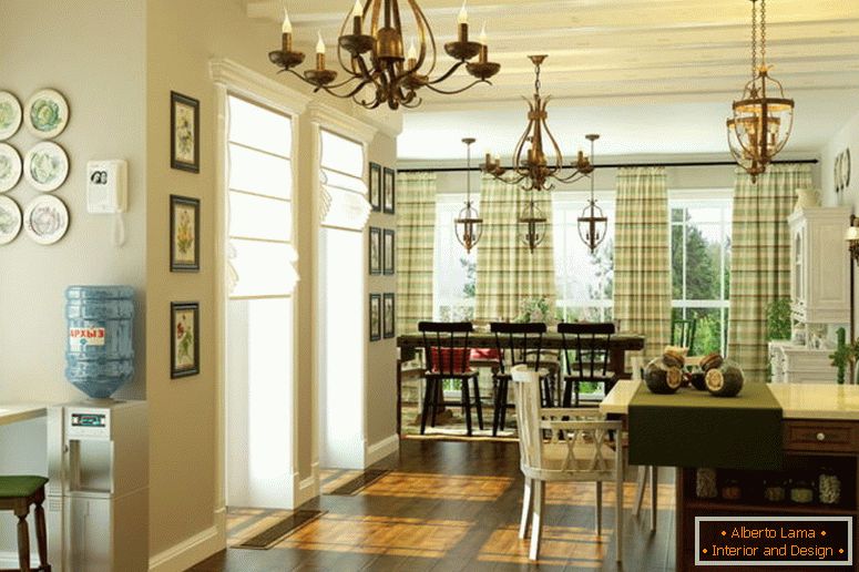 Распростирање простора се врши помоћу различитих детаља ентеријера како би се формирао потребан број кругова за пуну кућу. Шема је сасвим јасна: периметар је испуњен канцеларијским "собама" и објектима, ослобађајући центар и чини га веома угодним за живот.