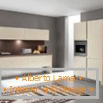 Отворена италијанска кухиња са пешчаним каменом нуди стилске уређаје за специјалне гурмане, односно за оне који желе да кувају рафинисану храну. У углу се налази компактна спаваћа соба са малим столом. Купатило је приказано тамним бојама.
