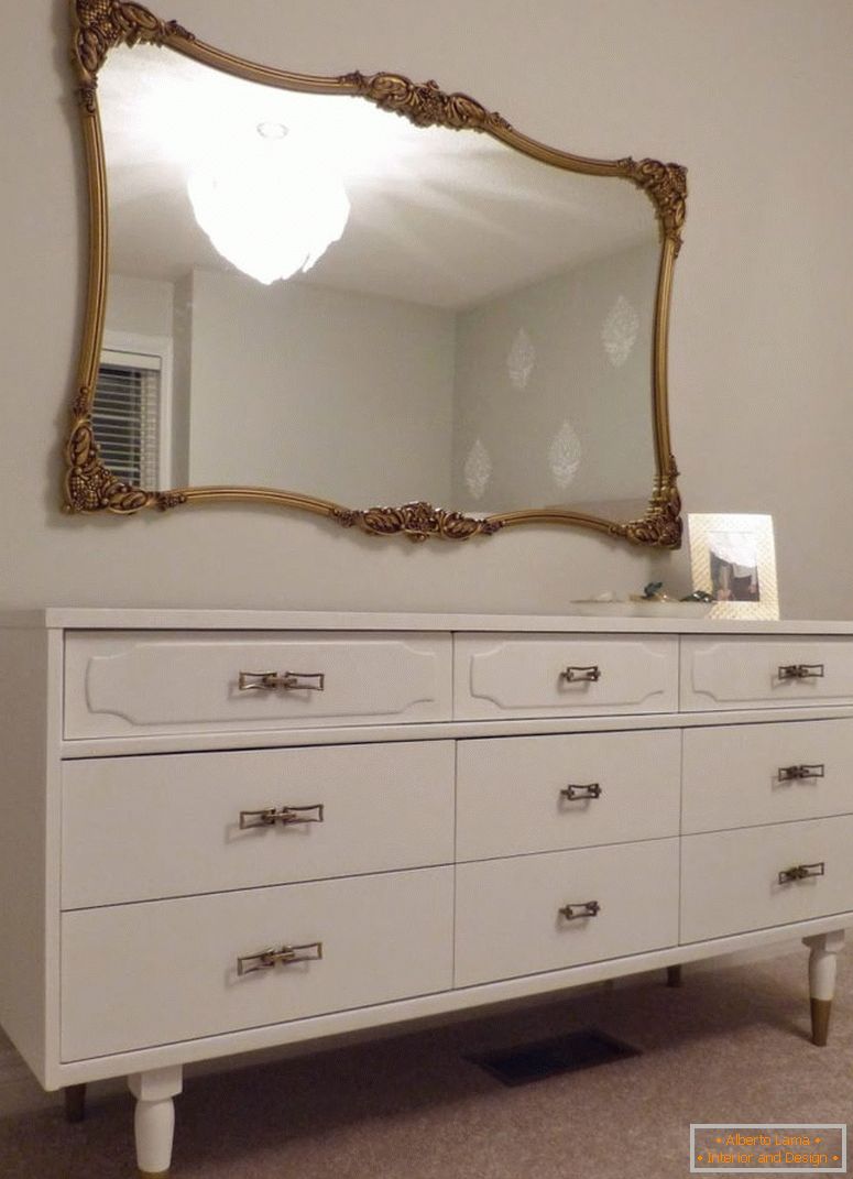 За завршну обраду плафона и производњу ормара у купатилу дизајнери су такође користили фибролит. Али посебност његовог ентеријера била је окренута једним зидом са хексагоналним мозаичним плочицама различитих нијанси. Изгледали су да соба изгледа као кошница.